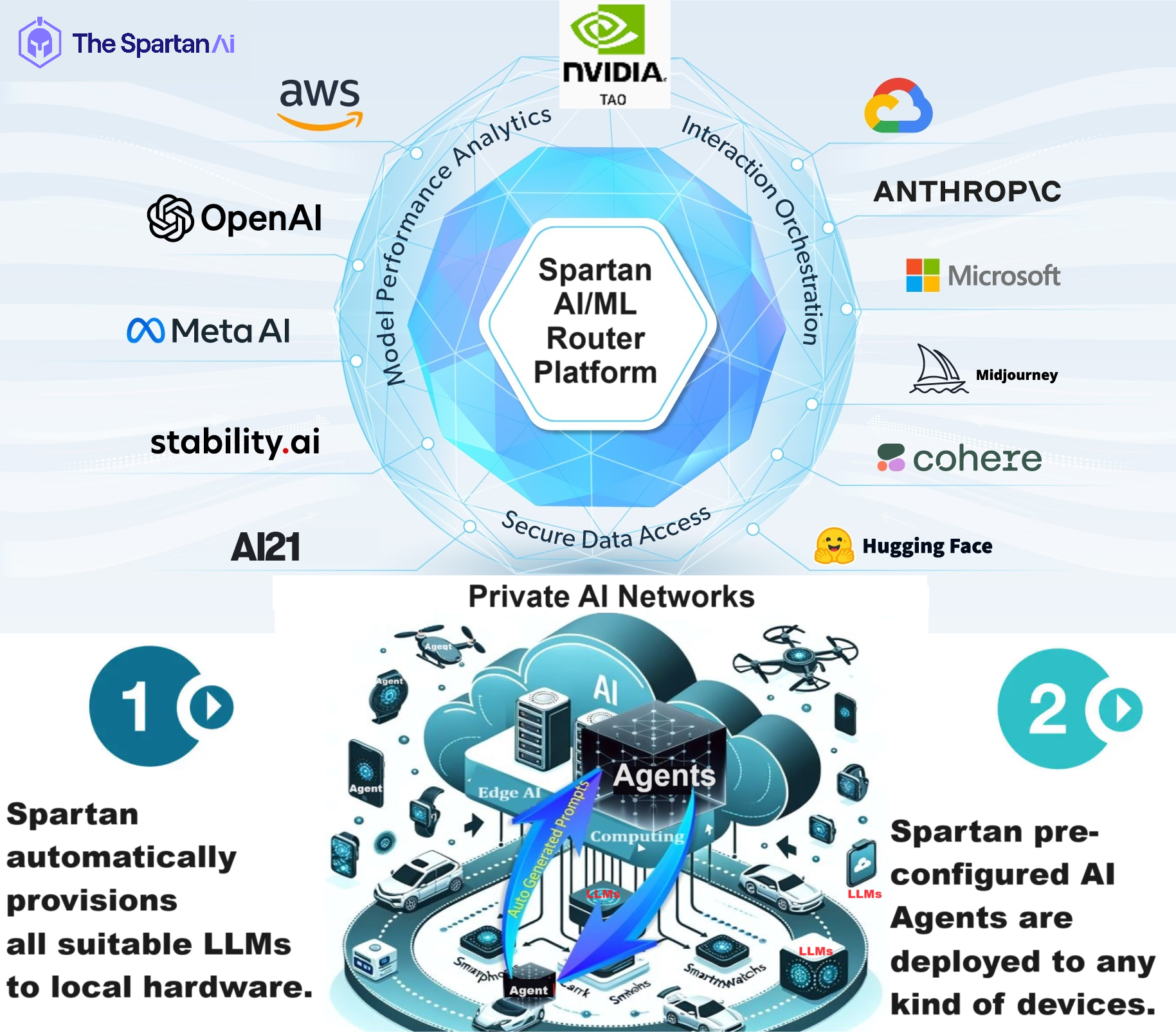 The Spartan AI/ML CyberSec Platform is a multi-protocol ecosystem allowing to provide orchestration and provisioning for AI/ML Models to various types of EndPoints – laptops, servers, phones, tablets, routers, gateways, automotive and other devices .