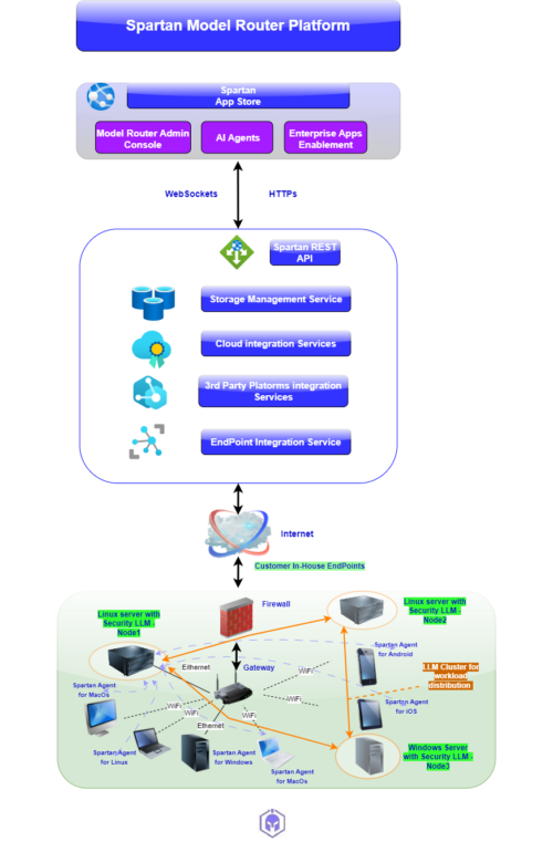 • Endpoint cybersecurity protection and diagnostics. The Spartan Private AI Platform along with its Agents deployable to Android Endpoints delivers device cybersecurity protection and vulnerability analysis.